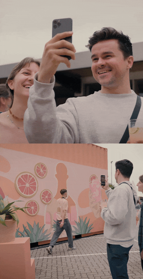 Unsere Lösung: Ein knalliges, „refreshingly perfect“ Brand-Statement als interaktiver Hingucker. Per QR-Code konnten Besucher*innen den Instagram Filter öffnen, und das Artwork zum Leben erwecken.