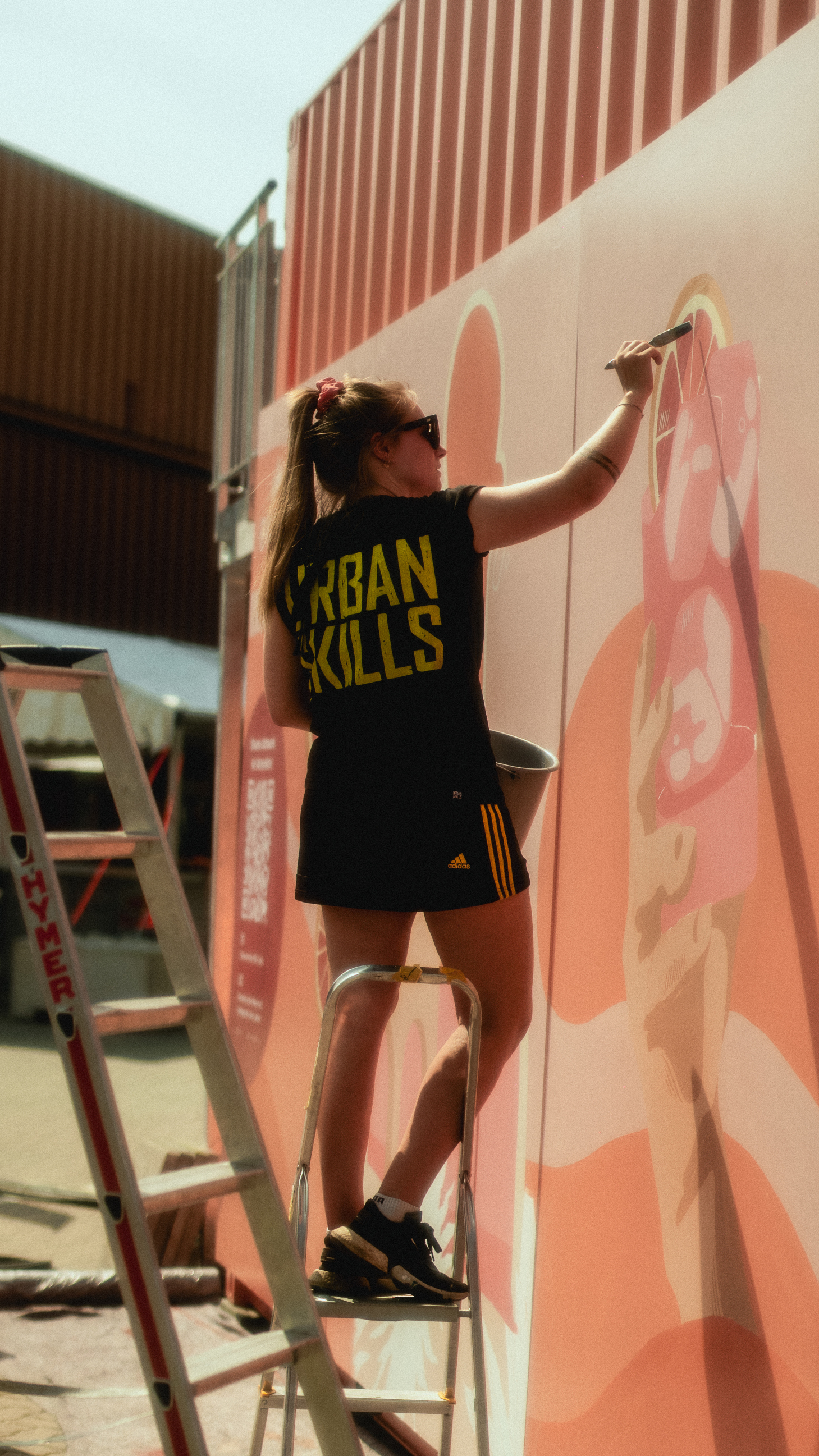 Damit sich die Experience nahtlos in das Gesamtkonzept von Event Agentur KK03 einfügte, hatten wir die pinke Farbwelt im Mural Design aufgegriffen.